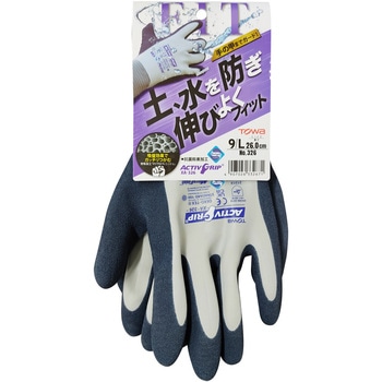 手の甲全体にコーティングを施しており、土、汚れ、水分などが手袋内部に浸入しにくい構造となっています。ピタッと吸着して掴みやすい、特殊スベリ止め「マイクロフィニッシュ加工」を施しています。天然ゴムをコーティングしているため、引き裂きに強く、しなやかで作業性に優れています。抗菌抑臭効果のあるサニタイズ加工を施しています。