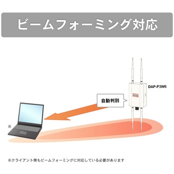 セット内容DAP-P3W6:1台、専用PoEアダプタ:1個、ACコード(1.2m):1本、標準アンテナ(5dBi) 5GHz、2.4GHz:各2本、ポール取り付けリング(適合ポール外径35~63mm):2個、取り付け用ブラケット:1個、取り付け用ビスセット:2セット、アース線(1.8m)&ビスセット:1セット取付方式ポール取り付け、壁掛け取り付けポート数PoE対応:1消費電力(W)15.9電源PoE給電(IEEE802.3at)適合外径(Φmm)4.5~6.5外形寸法(幅W×奥行D×高さH)(mm)124.0×47.0×190.0(アンテナ部及び突起部含まず)保護等級IP67入出力形式【専用PoEアダプタ】入力:AC100~240V、出力:54V(付属のPoEアダプタはDAP-P3W6以外に使用しないでください。PoEアダプタは~AC240Vの対応ですが付属のACコードは~125Vまでとなっております。)アンテナ2.4GHz 5dBi無指向アンテナ 2本、5GHz 5dBi無指向アンテナ 2本伝送速度(Mbps)(MAX)2.4GHz:574Mbps 11ax時、5GHz:1,200Mbps 11ax時、イーサネット:2.5Gbps伝送方法ワイヤレス:IEEE802.11a/b/g/n/ac/ax、イーサネット:IEEE802.3/u/ab/bzRoHS指令(10物質対応)対応電波周波数(GHz)2.4、5(5GHz帯を使用する場合、5.2GHz、5.3GHz帯域の電波の屋外での使用は電波法により禁じられています。また5.3GHz、5.6GHz帯域の電波を使用する場合は気象レーダーなどの干渉を避けるためのDFS機能により一時的に通信が途切れる可能性があります。)周波数(GHz)2.4/5動作温度範囲(℃)-20~60ソフトウェアバージョンユーティリティ:設定ユーティリティ(Webブラウザからアクセス)内容量1台