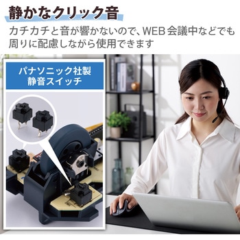気になるクリックのカチカチ音が響かないため、会議中のパソコン操作や在宅勤務時の早朝・夜間の作業などでも気にせず使用できます。