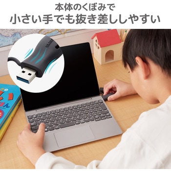 プログラミング教室や習いごとのデータ持ち運びにピッタリ!小さい手でも抜き差ししやすく、落としても壊れにくいやわらかシリコンボディーの子ども向けUSBメモリです。本体と一体型のキャップを採用し紛失を防止。USB3.2(Gen1)の高速データ転送に対応し、基本性能も充実しています。
