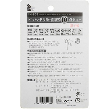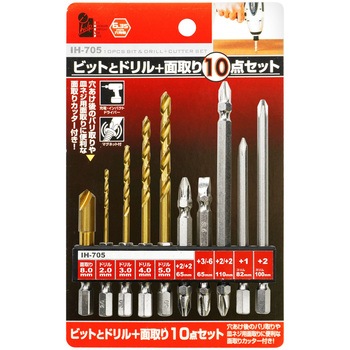 用途ジ締め、穴あけ、バリ取り、皿ねじ用面取りに対応したドリルパーツのセットです。充電・インパクトドライバーで使用可能。セット内容【mm】面取りカッター8.0、ドリル2.0、3.0、4.0、5.0、+2/+2(65)、+3/-6(65)、+2/+2(110)、スリムビット(+1・82、+2・100)材質ビット/クロームバナジュウム。鉄工ドリル/ハイス&チタンコーティング。面取りカッター/ハイス(HSS1ブレード、ノーコーティング)軸径(Φmm)6.35/六角軸表面処理ニッケルメッキ パールサテン仕上 マグネット付。内容量1セット