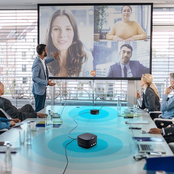 ヘッドセットやスピーカーを使わずに手軽に多人数でのWEB会議が可能です。