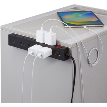 小型ACアダプタが差し込める(差込口ピッチ45mm)10個口電源タップ。iPadなどのタブレットの充電器接続に便利です。
