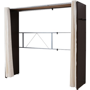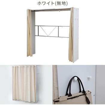 しっかりしてシンプルな、生成りのカーテン式のカバー付きで服を隠してお部屋すっきり。128cmから、最大で200cmまで伸縮する大容量タイプ。