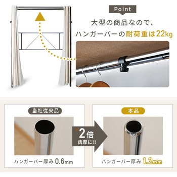 たくさんしまえて、すっきり隠す。透けないカーテンの 大容量ハンガーラック。メーカー通常品より2倍厚い、肉厚1.2mmパイプを使ったしっかり構造のハンガーバーを採用。