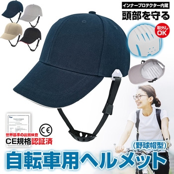 見た目は、まるで、普通の野球帽。内側は、簡単な緩衝プラ。転んでアタマ打ったときに保護、大事故時は恐らく、、、、。雨天時に備えて、モノタロウ防水スプレイをたっぷり吹きかけました。あごひもがゴムなので、装着し易いです。