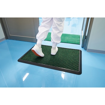 これからの衛生対策に!菌やウイルスの持ち込みは足元から防ぐ。菌やウイルスは人の出入りによって、屋内へ持ちこまれるリスクがあります。そこで、これからの衛生対策として注目されているのが足元の消毒。入口に消毒ゾーンを設置することで、足元からの菌やウイルスの持ち込み、そして施設内の汚染対策が行えます。マットとシリコンマットベースの2層式。耐薬品性の高いシリコン素材のマットベース。