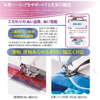 工業用ミシンの技術【BOX送り】を採用。送り歯を水平に保ち ながら布を送ることで、ぬい縮みや布ズレに対し効果を発揮。