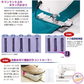 独自のセンサー方式を採用し、生地や段部の影響による送り詰まりを抑えたボタン穴かがりを実現。