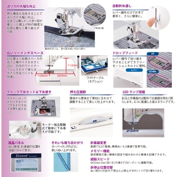 900sti/min(針/分)の速さでスピーディーに縫製可能。