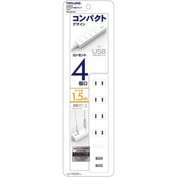 | 44822157 | TPA415-WT | 48283298 | STPA410-WT | ![]() | USB付き電源タップ 延長コード 抗菌仕様ホワイト色 | TOPLAND | 1個 | ¥1,798 税込¥1,978 | コード長さ違い(1m)。抗菌追加 |