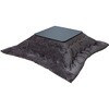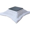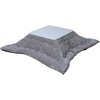 カジュアルこたつと、両面使えるこたつ布団の2点セット。角は安心のラウンド加工。日本国内トップメーカーの石英管ヒーター使用。温度無段階調節。足元すっきりコードフック付き。