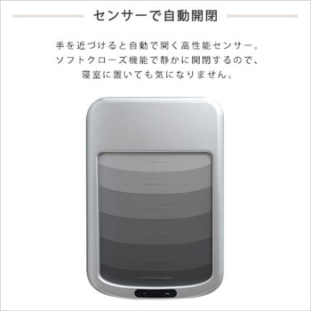 シャッター式50L自動開閉ゴミ箱!縦開き、横開きとは違い蓋がゴミ箱の枠内で開閉するため省スペースでスマートに置くことができます。蓋の開閉は静音なので寝室に置いても気にならないソフトクローズ機能です。ステンレスを使用しているので耐久性に優れており、汚れても軽く拭き取るだけで綺麗になるのでお手入れが楽ちんです。ゴミ袋をセットできるリングが付いているため、袋のズレやごみの漏れを防ぐことができます。単三電池4本で最大365日使用可能です。