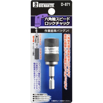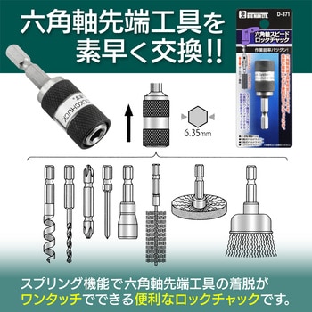 六角軸先端工具を完全にロックでき、ワンタッチで着脱できる便利なロックチャックです。