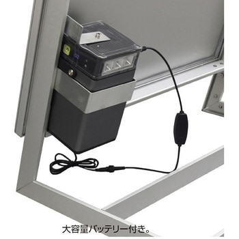 リモコン付属でON/OFF/輝度調整も自在。 前面から開閉できるフロントオープンパネル。ポスターやポップの交換カンタン! 調光コントローラー付き(2)大容量バッテリー付き。最大輝度で連続15時間点灯!少し照度を落とせば、約30時間点灯可能です。