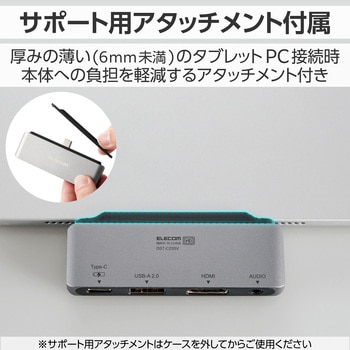 厚みの薄い(6mm未満)のタブレットPCに接続する際に、本体への負担を軽減するサポート用アタッチメントが付属しています。