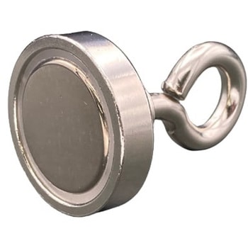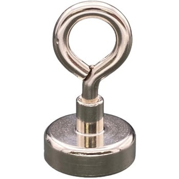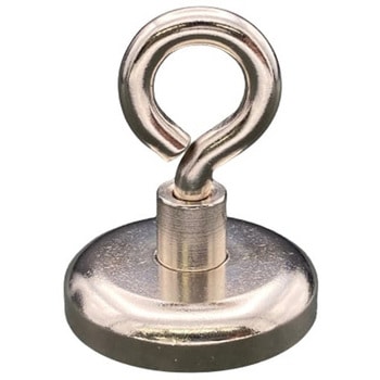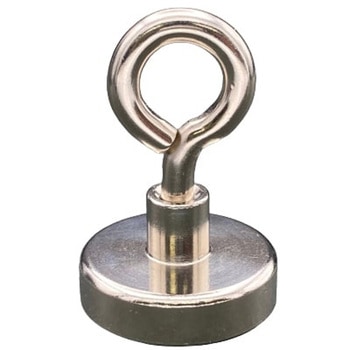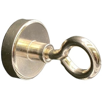 強力なネオジキャップ磁石にアイフックが付いた製品です。ネオジム磁石単体より吸着力を高める為、磁石をキャップで覆っております。付属の滑り止めゴムを吸着面に貼り付けることでキズ防止効果がございます。
