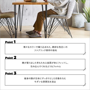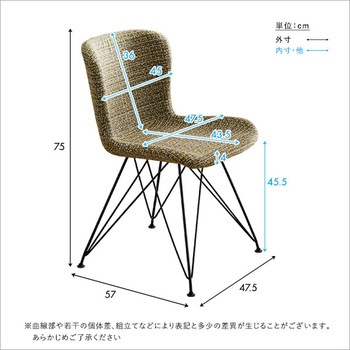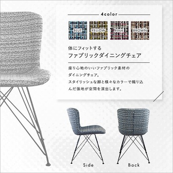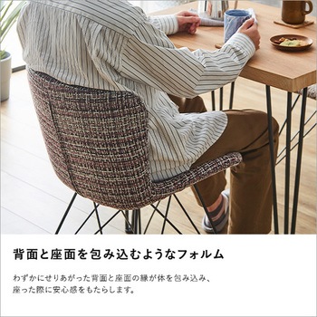 体にフィットする ファブリックダイニングチェア 1脚単品 【PALEY】座面と背もたれの縁が少し立ち上がっていることで体にフィットする座り心地のよいダイニング チェア。様々な色を編み込んだ張地と軽快で細身なスチール脚がバランスのよいデザインです。4色からお選びいただけます。