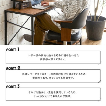 美しい曲線を描いたエレガントなオフィスチェア!皮革と曲木を組み合わせたエレガントなフォルムで、どこか高級感が漂います。座面は程よいクッション性で、フィット感もありリラックスしてお使いいただけます。アクセントとして流行りの曲木を肘置き部分にあしらっています。