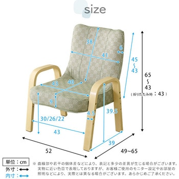 小柄な方にもぴったり!腰掛高座椅子!立ちあがりを楽にする握りやすいひじ掛け付き背もたれは3段階リクライニング可能でお好みの姿勢でご使用いただけます座面の高さは3段階調節、ローテーブルやこたつなどにも合わせてご使用いただけます座面は座り心地がよいウレタンフォームを使用折りたたみができコンパクトに収まりますカラーは選べる4色展開!和室にも洋室にも合うおしゃれなデザインです