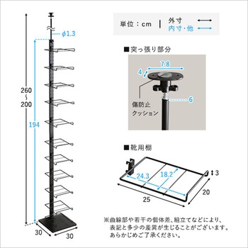 見せる収納の突っ張りシューズラック11段!お気に入りの靴を飾るディスプレイラックとしても、靴を収納するためのシューズラックとしてもお使いいただけます。棚の高さ調節が可能なので、ハイカットやロングブーツでも容易に収納ができて便利です!
