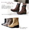 ジップ付で足入れ簡単な大人ショートブーツ。サイドジップで脱ぎ履きしやすいデザインです。細めのデザインで足がスッキリ細く見えます。