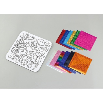 商品説明:カラフルなホイルシートをこすってはがすだけ! 簡単にキラキラな作品ができる!