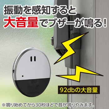 窓に貼り付けて簡単設置!振動を感知すると大音量でブザーが鳴る!92dBの大音量!