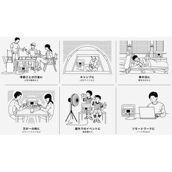 もしもの時、明るさや温かさに心が救われ、スマートフォンからの情報やメッセージにも助けられます。ポータブル電源は、日常に便利さと快適さを。非常時には安心感を与えてくれます。暮らしを支える家電として、プライベートに、お仕事に、さまざまなシーンで使えます。