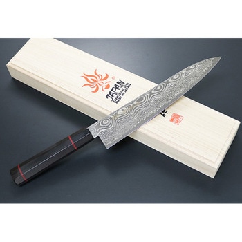 幾種ものステンレス材を折り重ねてできた片側50層の側金で芯材を挟み込み、激しく打ち寄せる荒波の波飛沫(なみしぶき)を連想させる101層のダマスカス鋼を構成しています。