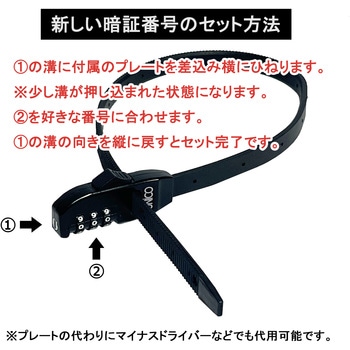 ・76gと軽くて切断されにくいステンレス製・自転車の施錠をはじめ、様々な用途に利用できる使い勝手の良い50cm長・ラチェット式に締まっていくので背常時の輪っかの大きさを調整可能・リリースレバーで解除の使いやすい仕様・鍵が不要の3桁ダイヤル式、暗唱番号簡単設定!・外装をプラスチックでコーティングしているので自転車に傷が付きにくい・自転車のロック・電動自転車の充電器のロック・前かごに入れたバッグのひったくり防止など用途は様々