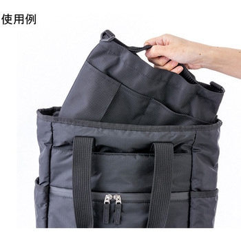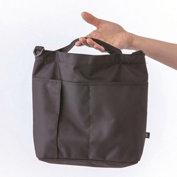 バッグの中をすっきり整理。現場の状況より使い分け!バッグインバッグ・トート・ショルダーの3通りの使い方ができます。ファスナー付スリットポケットで、ティッシュや手袋などサッと取り出せます。取り外せるキーチェーン付。