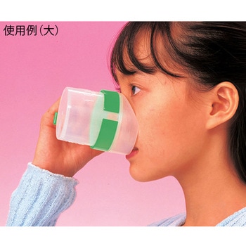 鼻に当たらないようにコップの縁がカットされた、頭をまっすぐにしたままでも飲みやすいコップです。