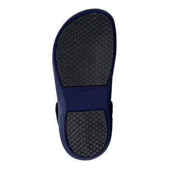 滑り止め効果の高い、特殊な凸凹形状ソールを採用しています。耐滑試験(JIS8101:2006)の性能基準をクリアしています。サンダル本体には抗菌加工を施しました。甲とつま先は、水滴の侵入を防ぎ落下物から足を守るようしっかり覆いました。サイドホールで通気性を確保し、深めのかかとで脱げにくくしました。フィット感がアッブする取外しできるインソール付きです(水回りでは取り外してご使用ください)。