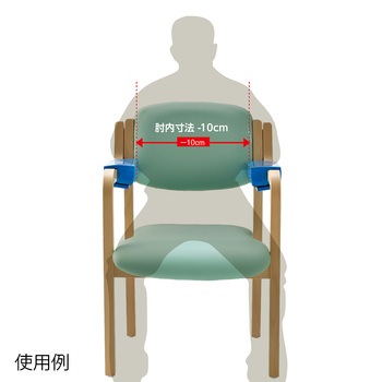 椅子のひじ部に取り付けて斜め座りによる脇腹圧迫の痛みを軽減し、体幹維持を補助します。