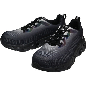 ニット素材は履いた圧迫感が少なく通気性も抜群です。ソールサイドの通気口から靴の中のムレを放出する構造です。視認性を確保するために、反射素材を使用しています。