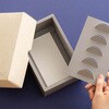 進物用におすすめな身フタ別のギフトボックスです。葉っぱの繊細でシンプルなデザインは、どんなギフトシーンにも使いやすく、また縦でも横でも使えるようなデザインにこだわりました。フタは下までかぶせられるので、包装紙もきれいにかけることができます。お菓子の詰合せがきれいに見える仕切付です。お菓子の種類や入数を変えてギフトをつくれる4サイズ展開です。