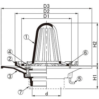 防水層施工貼り代100mm。より確実な防水施工ができます。防水層受部は防水層の貼付け面積を多くするために広くとってあります。防水層押えの水抜穴によりドレイン廻りの水はけがスムーズにできます。屋根外断熱工法用(断熱押えなし)としても使用できます。