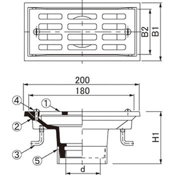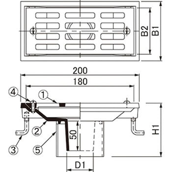 ルーフドレイン(みぞ幅100mm用)バルコニー用(モルタル防水・塗膜防水用)