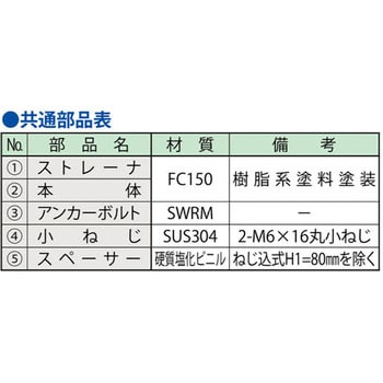 FC150、SWRM、SUS304、硬質塩化ビニル