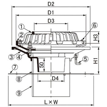 ルーフドレインデッキプレート用 バルコニー中継用(アスファルト防水・シート防水・塗膜防水用)
