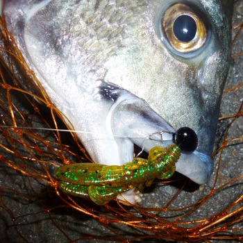 リップラップ等でのカニパターン、砂泥のボトムをゴリゴリと砂煙を立たせ、チヌにアピールするシャコパターンに完全対応。もちろんフックはチヌに潰されず、完璧に貫くストロングフック採用。ボトムでの安定した着底姿勢を見せるヘッド形状とあいまってカニ喰いのチヌ達を一網打尽。チヌのみならず、カニが大好物なカサゴ、ハタ類等ロックフィッシュにもバッチリ対応します。