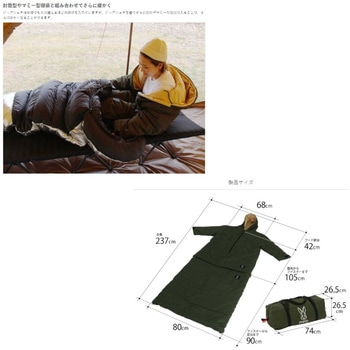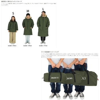 就寝前の行動時にはジャケットとして、就寝時には寝袋として使用できるキャンプギアです。ゆとりのあるシルエットなので、ダウンジャケットなど、通常のアウターの上から着ることができます。また、燃えにくいコットン100%を使用しているため、ポリエステルやナイロンなどのシェルジャケットを穴あきから守る、焚き火ジャケットとしても使用できます。