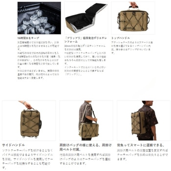 一般的なクーラーボックスと比べ薄型に設計し、持ち運びやすさに特化したソフトクーラーバッグです。メインハンドルに加え、2つのサイドハンドル、取外可能な肩掛け用ベルト、各所のDリングを内蔵し様々な持ち運び方法に対応。バイクに縛りつけてキャンプツーリングに、バッグパックに固定しフェスのドリンク入れに、背中に背負ってBBQの差し入れの運搬に、など持ち運びやすさを活かして多様な使い方をすることができます。
