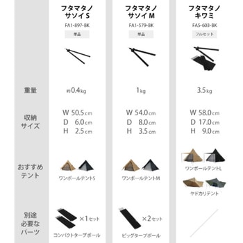 ワンポールテントのメインポールがなくなったら、どれだけテントが自由に使えるだろう。そんなことを思ったことはありませんか。これを使えばメインポールの代わりに2本のポールでテントを支えることができるので、テントの真ん中にあるポールをなくすことができます。ポールがなければ見た目がスマートになる。自由にレイアウトできる。広々使える。長さ調整もできるので同ブランドの色々なワンポールテントに対応します。