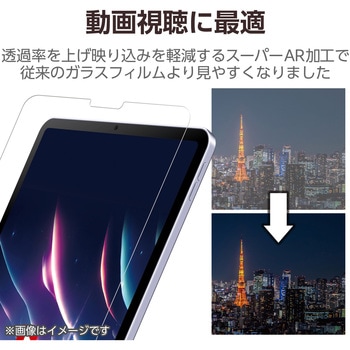 透過率をアップするスーパーARを加工を施しています。動画視聴の際などに光の映り込みに邪魔されずに視聴することができる超高透明タイプのガラスフィルムです。透過率を上げることで反射率を下げるスーパーAR加工で、通常の高透明ガラスに比べ非常に見やすくなります。通常の高透明ガラスの透過率が約91%に対して、約95%の高透過率です。 ※メーカー画面保護ガラスフィルム製品との比較。表面硬度10Hの強化ガラス採用により、保護ガラス表面の傷を防止します。※メーカー基準による10H鉛筆硬度試験での実力値です。指紋・皮脂汚れが付きにくく、残った場合でも簡単に拭き取れる指紋防止加工を施しています。貼り付け面にシリコン皮膜をコーティングし、接着剤や両面テープを使わずに貼り付け可能な自己吸着タイプです。貼りやすく、貼り直しも可能です。時間の経過とともに気泡が目立たなくなる、特殊吸着層を採用したエアーレスタイプです。小さな気泡ができたときには、指などで押し出すことで気泡を抜くことができます。握ったときやかばんから取り出すときにも引っかかりにくいように、エッジに丸みをもたせた「ラウンドエッジ加工」を施しています。特殊な飛散防止設計により、万が一割れてしまった際にもガラス片が飛散することなく、高い安全性を実現しています。フィルムを貼ったままでも端末操作ができるタッチスクリーン入力に対応しています。端末の形状に合わせたサイズにカット済みなので、パッケージから取り出してすぐに使用可能です。フィルムがキレイに貼れる専用ガイドフレーム付きです。端末にガイドフレームを取り付けて、ガラスフィルムを置くだけで簡単に位置決めができます。ヘラと、クリーニングクロス、ホコリ取りシールが付属しています。自社環境認定基準を1つ以上満たし、『THINK ECOLOGY』マークを表示した製品です。環境保全に取り組み、製品の包装容器が紙・ダンボール・ポリ袋のみで構成されている製品です。