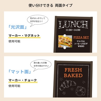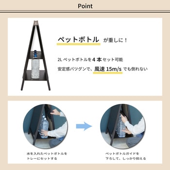 風速15m/sにも耐えられる転倒防止ブラックボード。強風でも倒れない2リットルのペットボトルを4本設置可能で、追加の重し対策が不要です光沢面:マーカー&マグネット可、マット面:チョーク&マーカー可畳んで収納もできる 木製枠で丈夫です