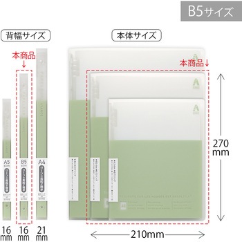 ちょうどいい大人っぽさくすみカラーのルーズリーフバインダー新登場! <とじ具はリーフの着脱がしやすいスライド式8穴リング>上下4穴分リングを残し中央部リングを取り除くことでリーフの着脱を容易にし、指や手の挟まれ事故を軽減します。 <付属品にはポケット付きのインナーカバー>メモや付箋も手軽に収納が可能です。薄手のものが入れられるポケットがあり、リーフがめくりやすくなる効果も。