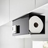 片手でカットできる!大判タイプのキッチンペーパーに対応したカバー付きの戸棚下キッチンペーパーホルダー。戸棚下に浮かせて収納でき、カバー付きなのでほこりや油はねを防ぎ衛生的です。丈夫なスチール製なのでマグネットなどが貼り付けられます。シリコーンのストッパーが付いているので片手で簡単にカットできます。左右どちらからでも差し込むだけで簡単に交換できます。調節ネジで戸棚下にしっかり固定。