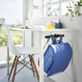 の天板下に直接取り付け。木ネジでしっかりと固定できます。ランドセルを掛けたまま勉強道具を取り出せて便利。